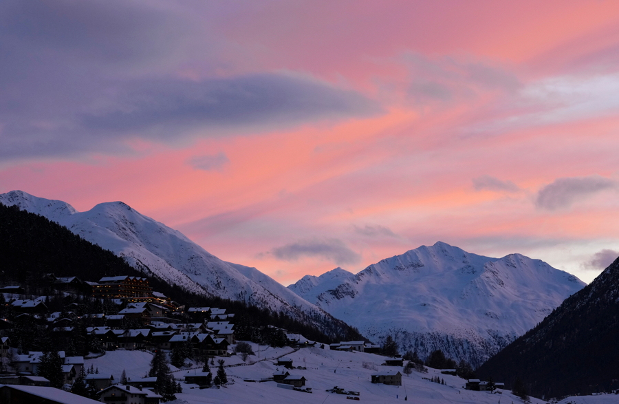 2月5日,利维尼奥山谷中的晚霞好意思成了一副画