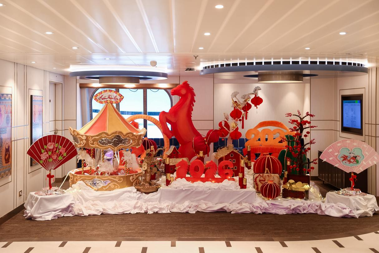 贾璎:咱们但愿客东谈主从登船那一刻起,就大致感受浓浓的中国年味。咫尺,咱们的全船仍是布满了红红火火的新春装扮,除夜夜当晚还缔造了整晚不鉴别的多种作风的跨年守岁和迎新当作。舞狮迎宾、财神巡游、亲子游园、国际音乐献技,中国传统歌曲演绎等节目接连上演,让来自不同区域、不同庚级的客东谈主王人能找到属于我方的节日氛围。