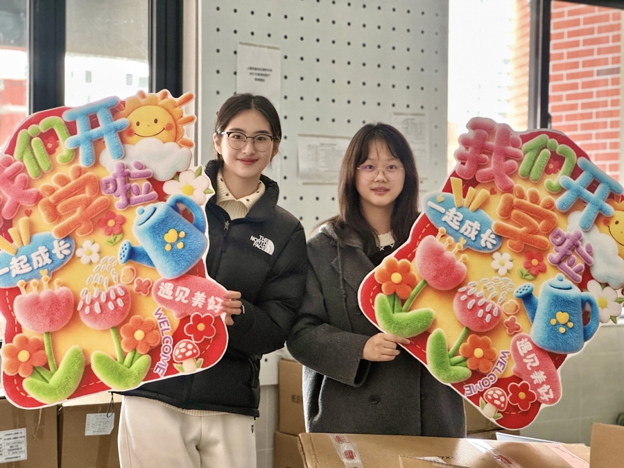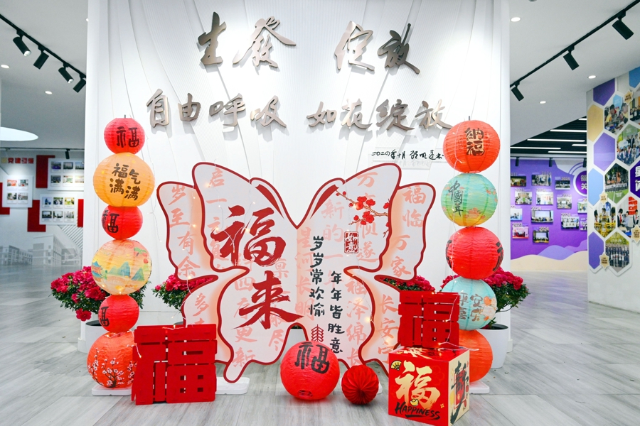 绘图迎新黑板报、摆放鲜美绿植,规整课桌椅、擦抹门窗,走近校园里,各处旯旮尽是暖意生机,让师生感受到温馨的氛围。走进上海市园南中学,“骐骥奔驰,志存高远”的主题交代在校门口格外崇拜,室内“福来”新春安装与之呼应,将马年的奋斗寓意与好意思好道喜融入校园的每个旯旮。