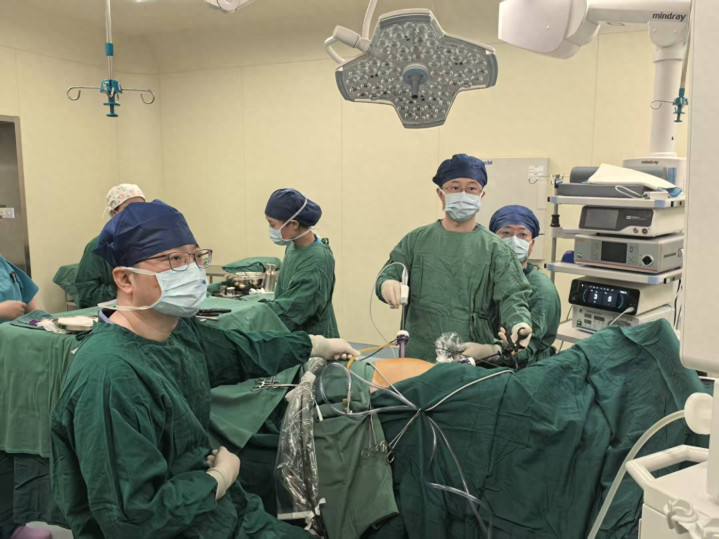 在麻醉科团队的密切监护下,余伟民考验、李浩勇考验密切配合,在患者腹部斥地了几个轻微的操作孔。腹腔镜镜头下,可见肿瘤体积弘远,质量强硬,与脾脏下极、左肾上极及肾上腺紧密粘连,界限不清。