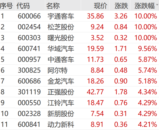 3月31日上昼,A股汽车板块活跃,宇通汽车、松芝股份、朝阳股份等涨停。