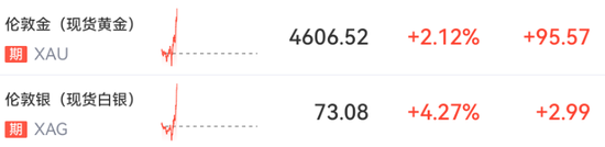 国内阛阓上,沪金主力合约涨超2%,沪银涨超5%。