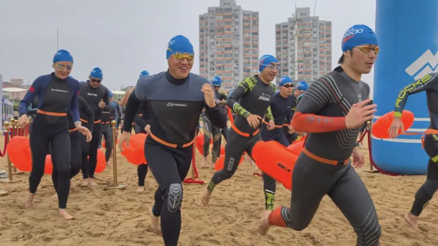大盛策略下昼1时,跟着发令笛声响起,选手们从金山城市沙滩里面水域的浮台鱼跃入水。