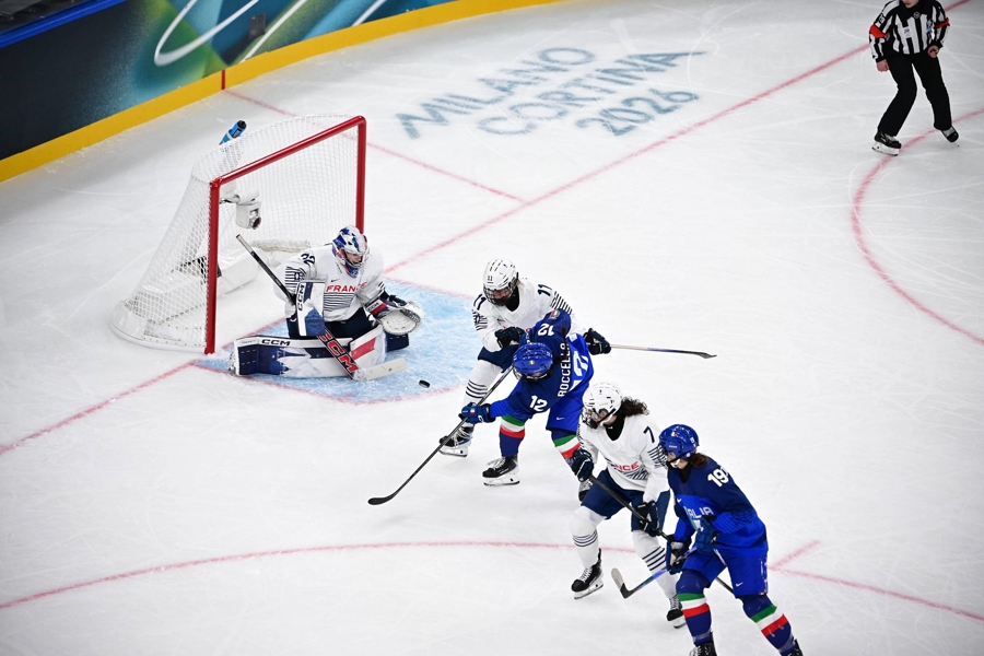 本届冬奥会首场冰球比赛在圣朱利亚冰球馆举行,意大利队以4比1校服法国队