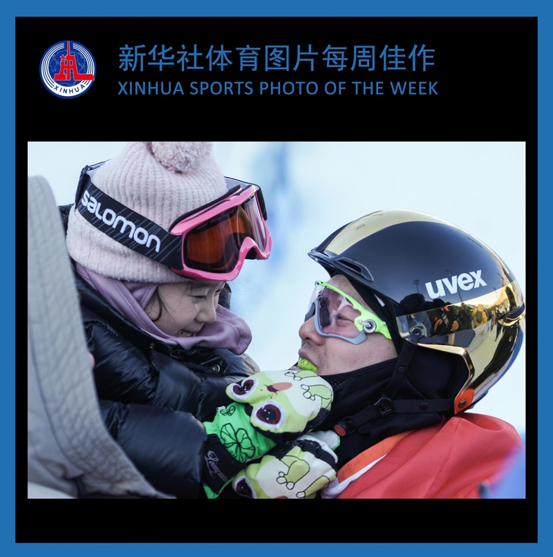 2025年12月20日,中国摆脱式滑雪通顺员王人广璞(右)的男儿在赛后为他摘下护脸。王人广璞取得男人个东谈主技俩银牌。当日,海外雪联摆脱式滑雪空中妙技世界杯(云顶站)在河北省张家口市崇礼区云顶滑雪场进行。\n 新华社 发