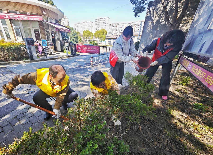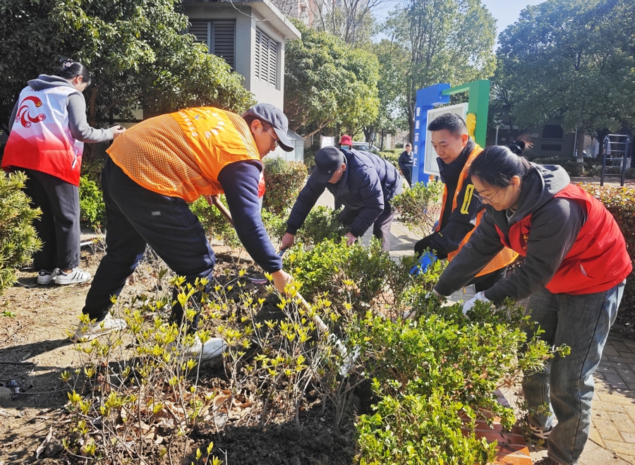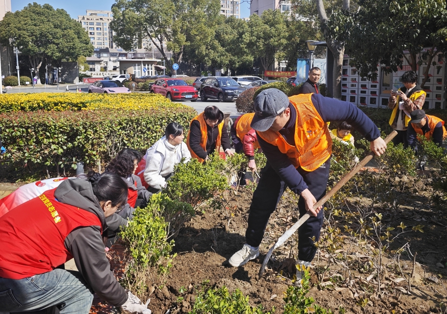 3月12日植树节,在金山区金山卫镇海帆住户区万和家园,小区党员、志愿者以及上海电子信息干事工夫学院师生共同开展以“‘植’此青绿 共治同业”为主题的绿化补种活动。