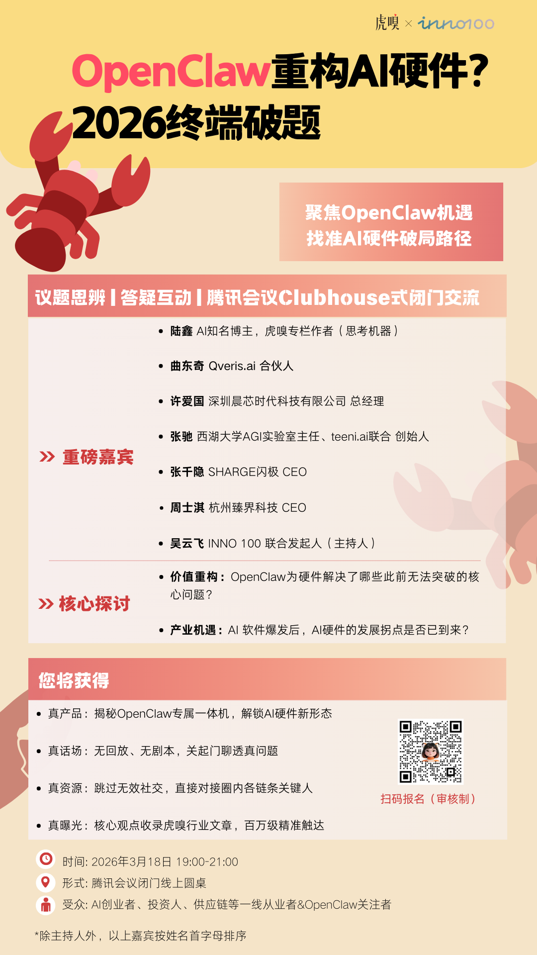 ⭐️3 月 18 日,咱们特邀OpenClaw Mini 一体机主创、Qveris.ai、西湖大学 AGI 实验室等一线巨匠,聚焦 OpenClaw 实践,揭秘国产OpenClaw Mini 一体机,沿途深刻斟酌AI 硬件破局旅途。