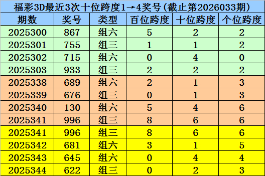 第2025341-第2025343期奖号:996、681、645,其下期奖号为:622,中位号码跨度为0;